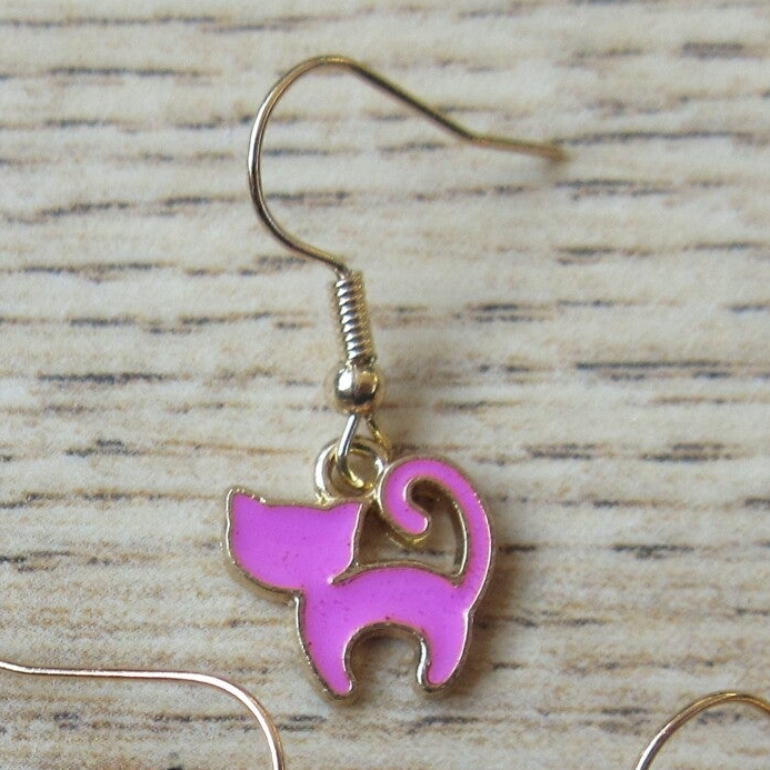 Oorbellen kat goudkleurig 11 Donker roze